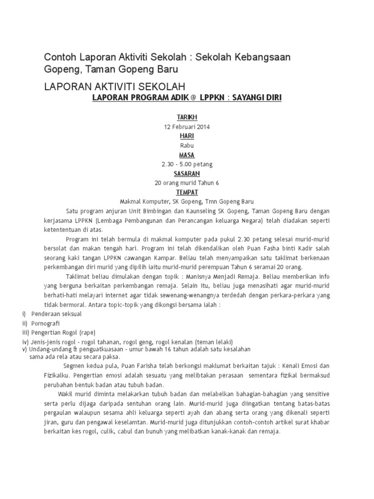 Format Penulisan Laporan Aktiviti Contoh Contohnya